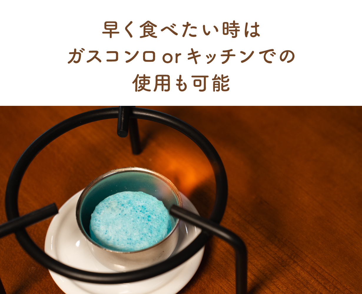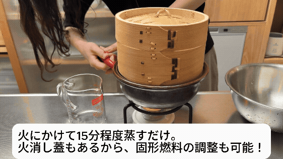 約5分で沸騰し始め、固形燃料より早く蒸しあがります。