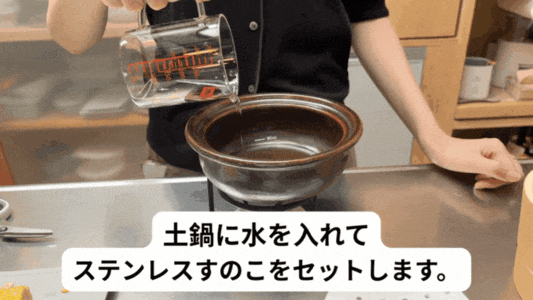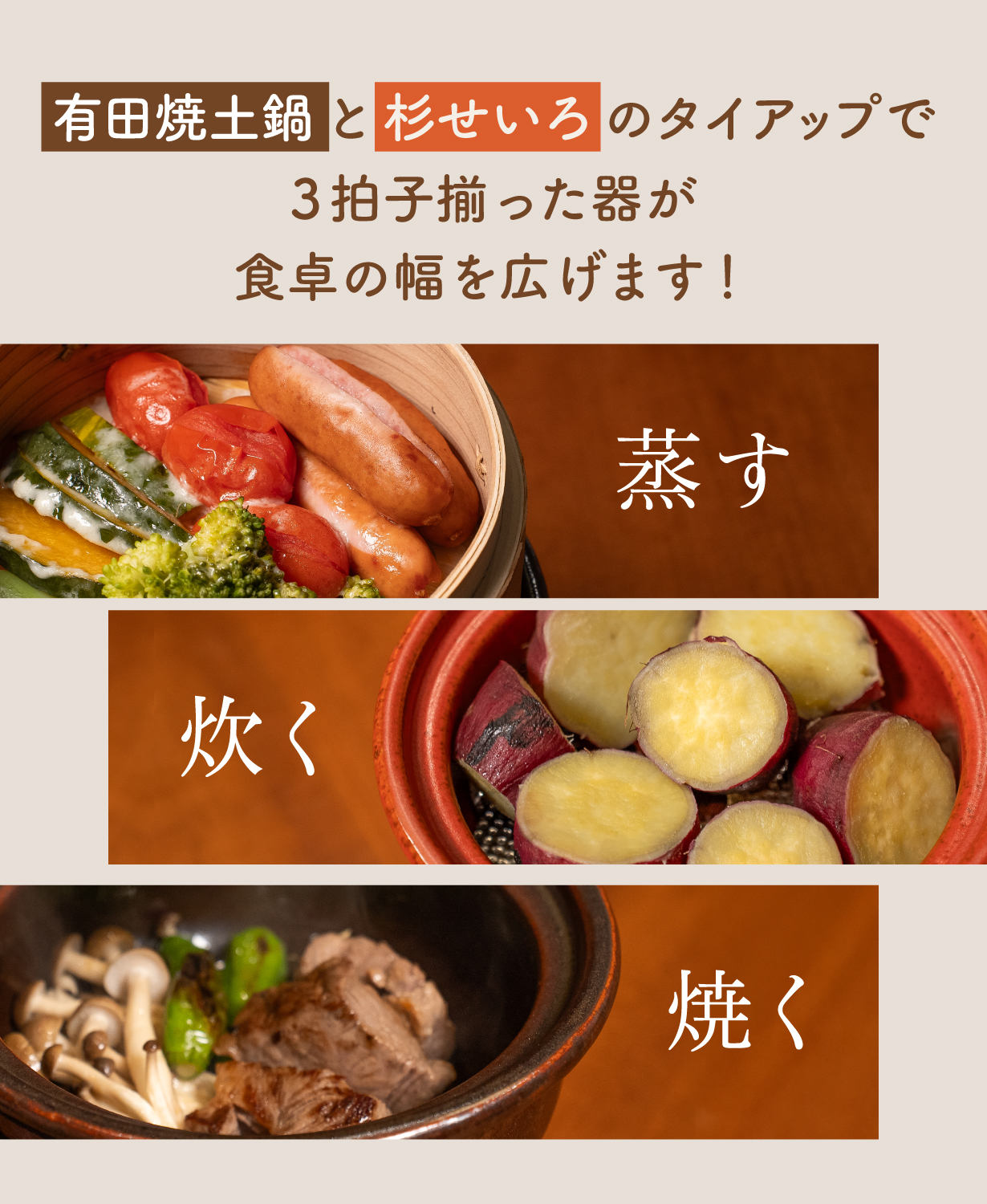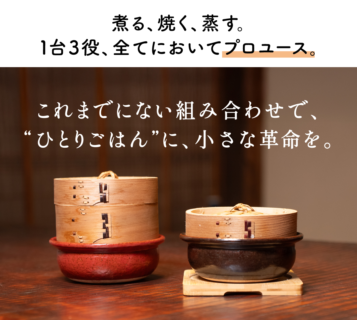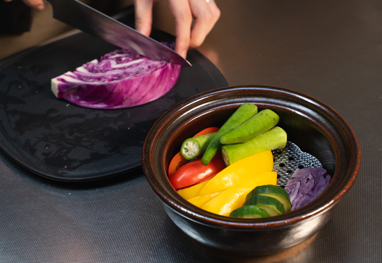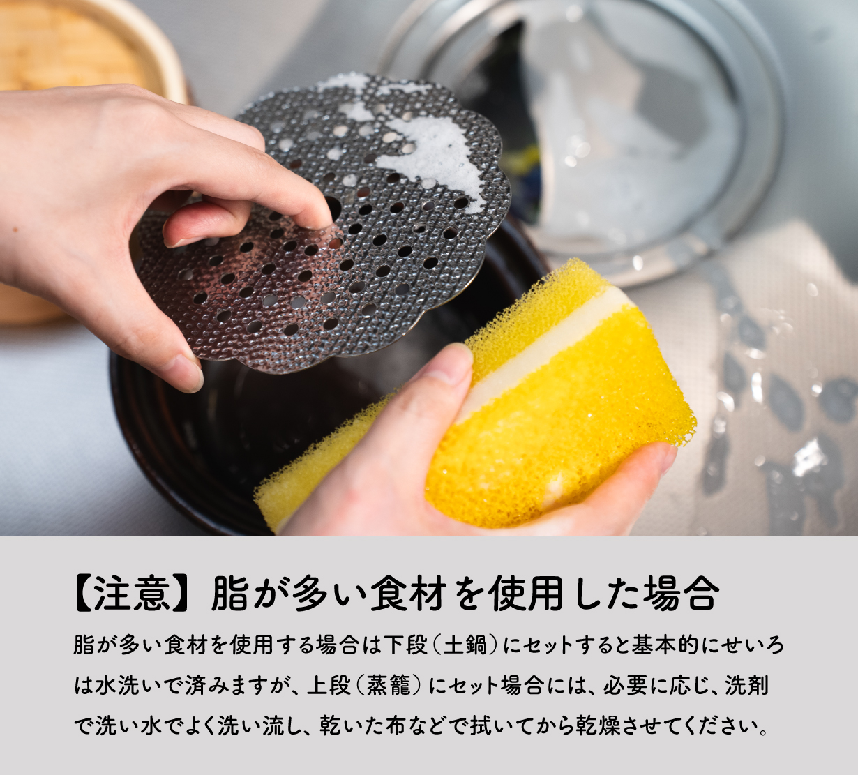 土台を「有田焼土鍋」にし、ステンレスのすのこを入れて使用することで、従来の鍋とせいろの洗い物を減らすことを実現しました。