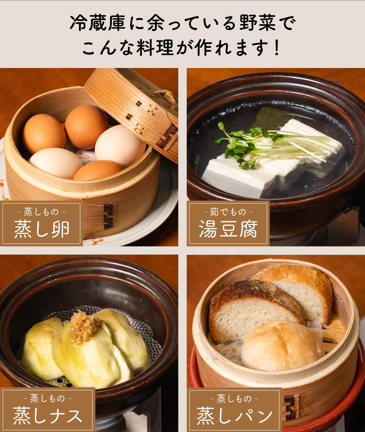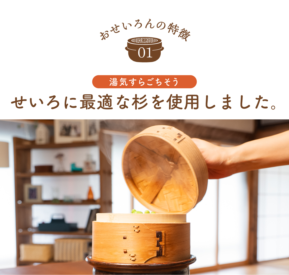 プロの道具作りの知恵が集結した「おせいろん」は、食卓を鮮やかに彩り、まるで料亭で出るような蒸し料理を毎日手軽に食べれるといった非日常体験をお届けします。