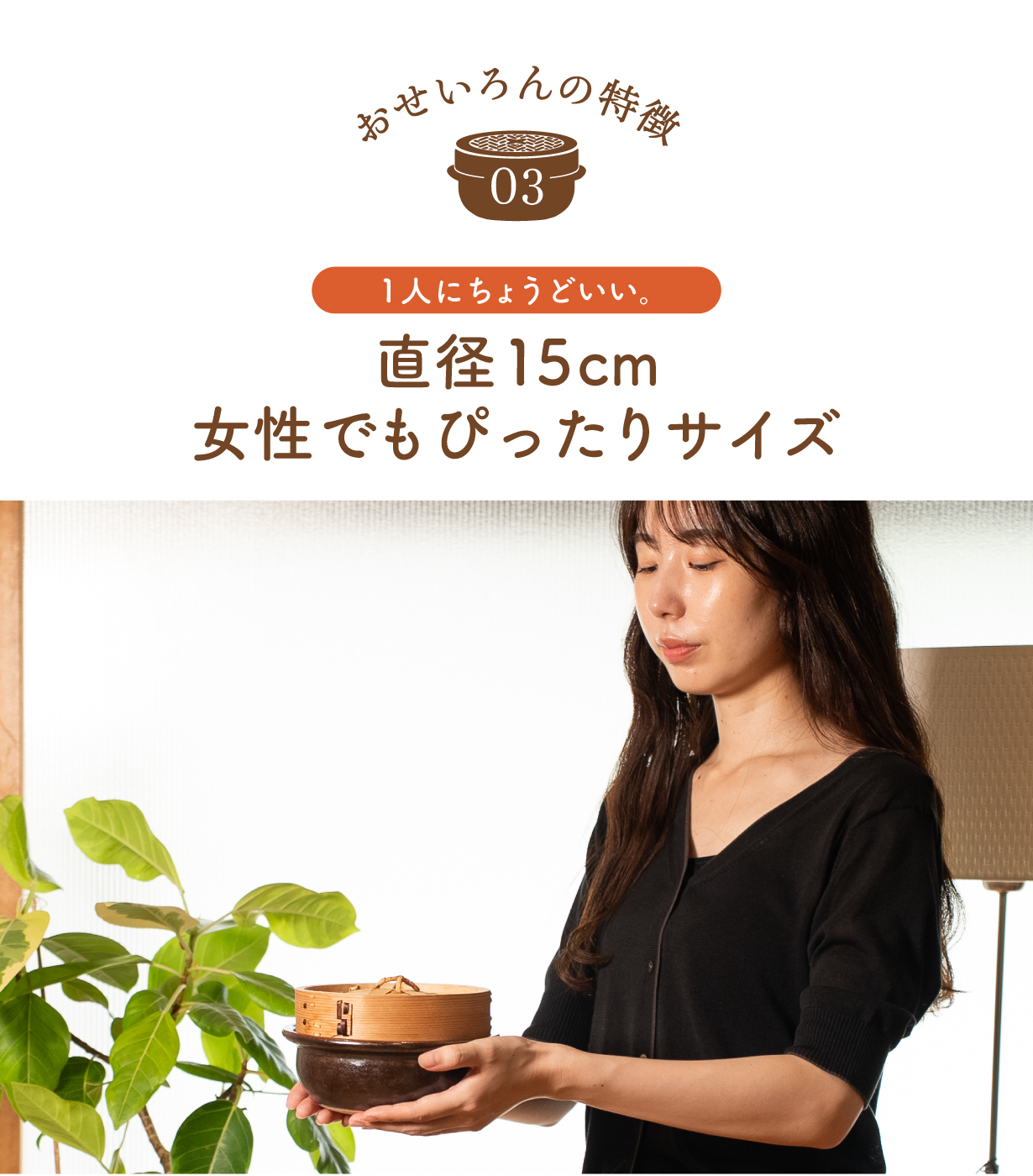 「おせいろん」は、直径15cmで女性でもちょうどいいサイズに仕上げました。